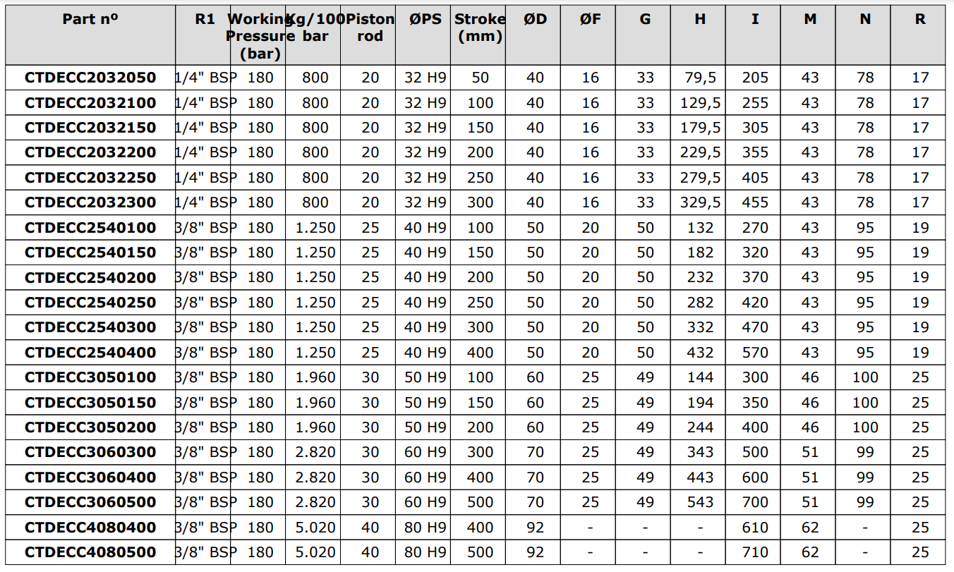 Sono disponibili diversi diametri di stelo e pistone, nonché diverse corse.