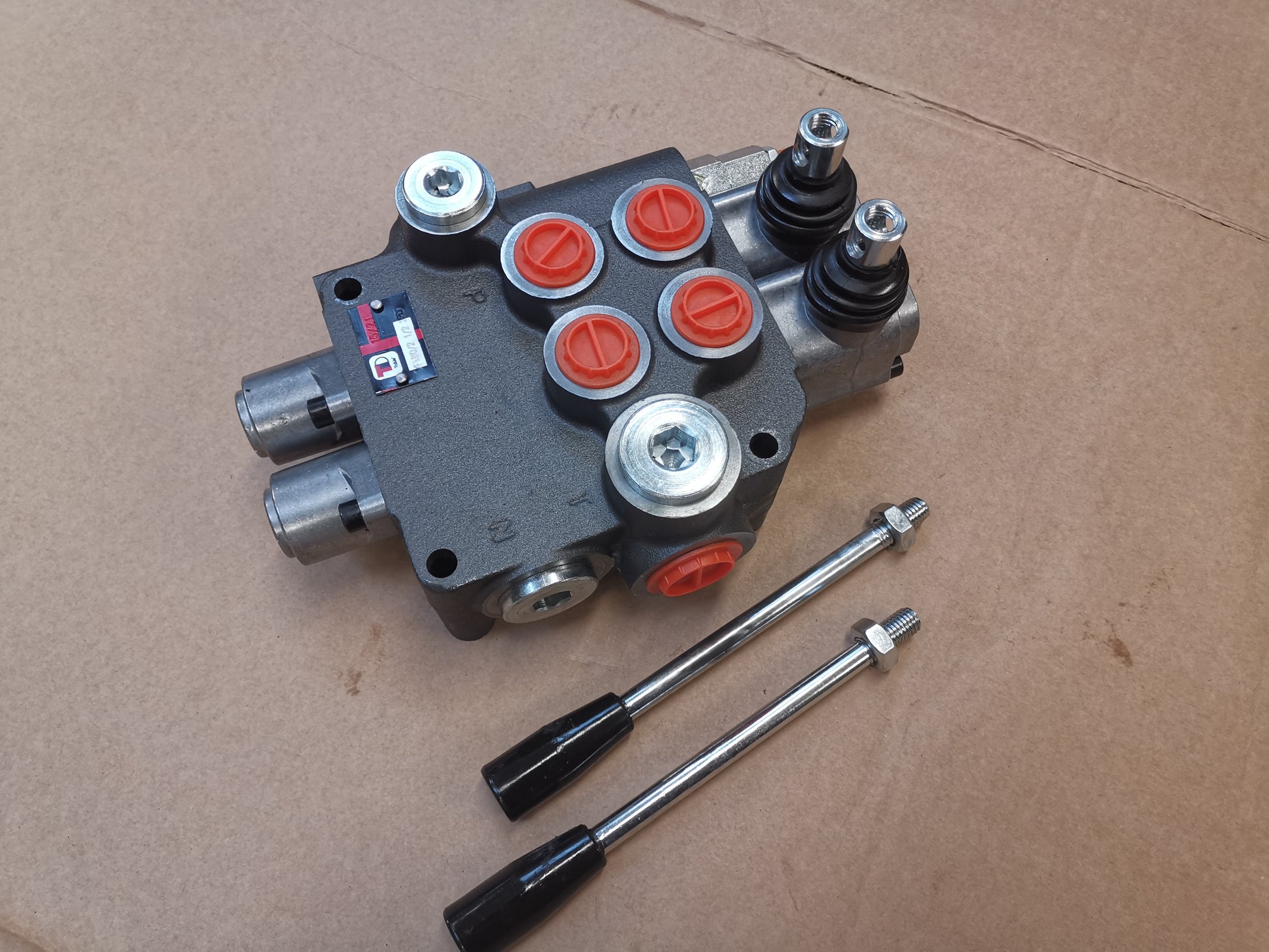 Monoblocco valvola a leva manuale a doppio effetto con valvola di limitazione della pressione 80 l/min