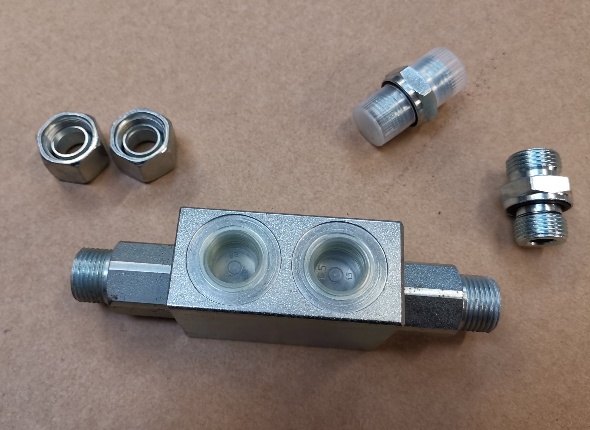 Qui vengono offerti blocchi di bloccaggio per cilindri idraulici a doppio effetto (o funzioni idrauliche a doppio effetto).