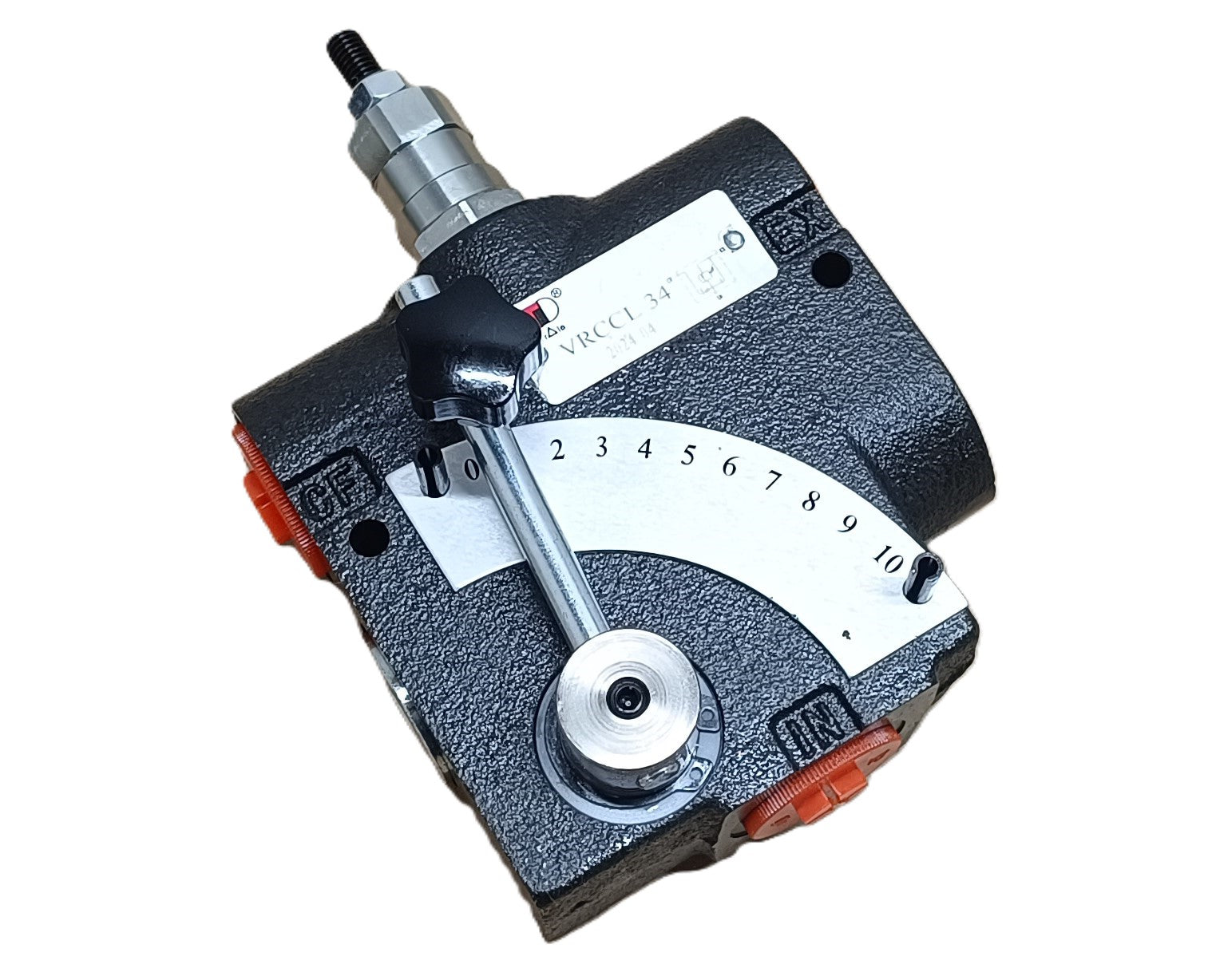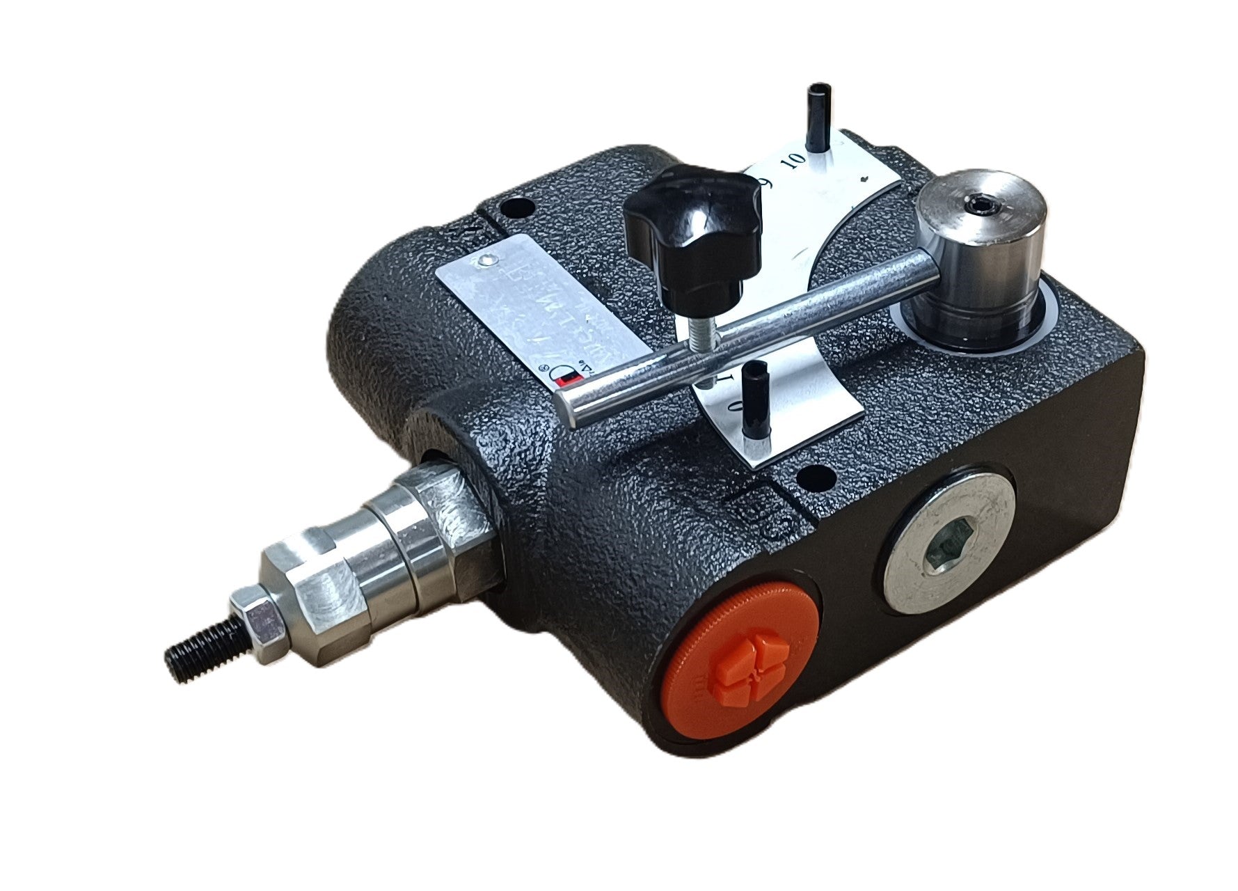Het ventiel wordt versteld via een hendel, de huidige stand is af te lezen op een schaal.