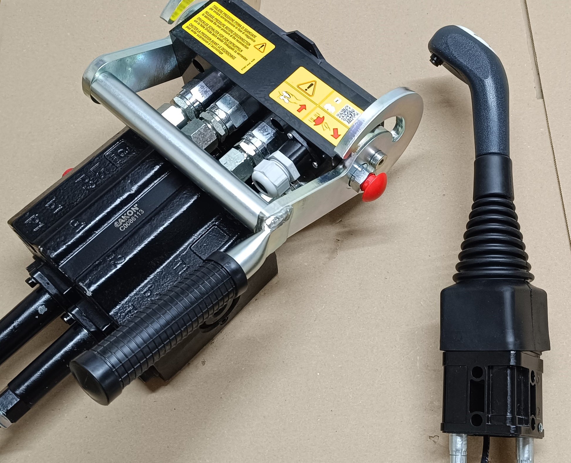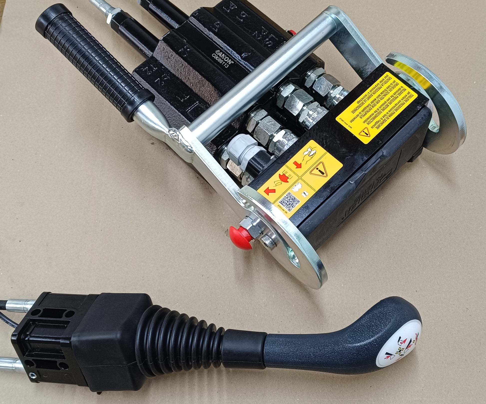 Angeboten werden hier professionelle AKON Frontladersteuergeräte inklusive Bowdenzug und Hebel mit optionalen Tastern.