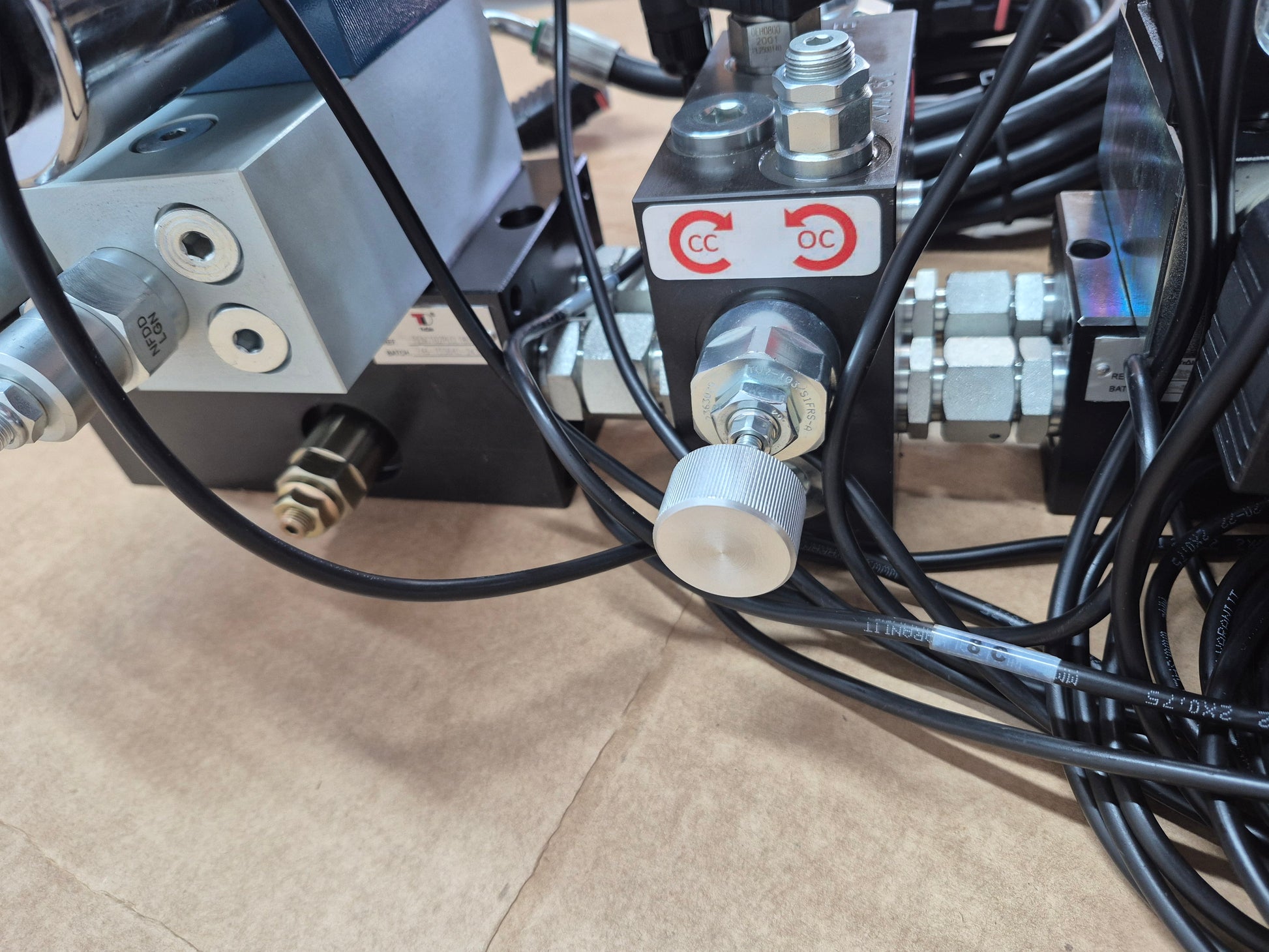 Der zentrale Block bietet die nötige Ventiltechnik für die Umschaltung zwischen LS- und Konstantstrombetrieb. Die Umschaltung erfolgt über ein Handrad.