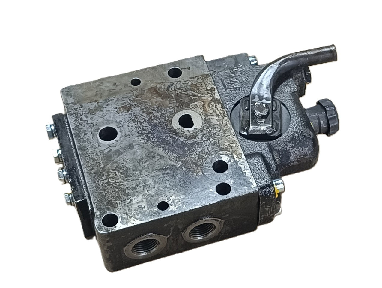 Bei diesem Steuergerät fehlen bei dem Anschluss des Hebels die vier Führungsnasen, es sollte daher ein Bedienhebel genutzt werden, der zentral über das Gewinde befestigt wird und als zusätzliche Führung die beiden Bohrungen ober- und unterhalb des Gewindes nutzt.