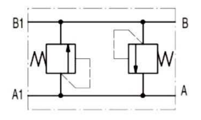Die Ventile sind über Kreuz angeordnet und sichern dadurch beide Flussrichtungen ab.