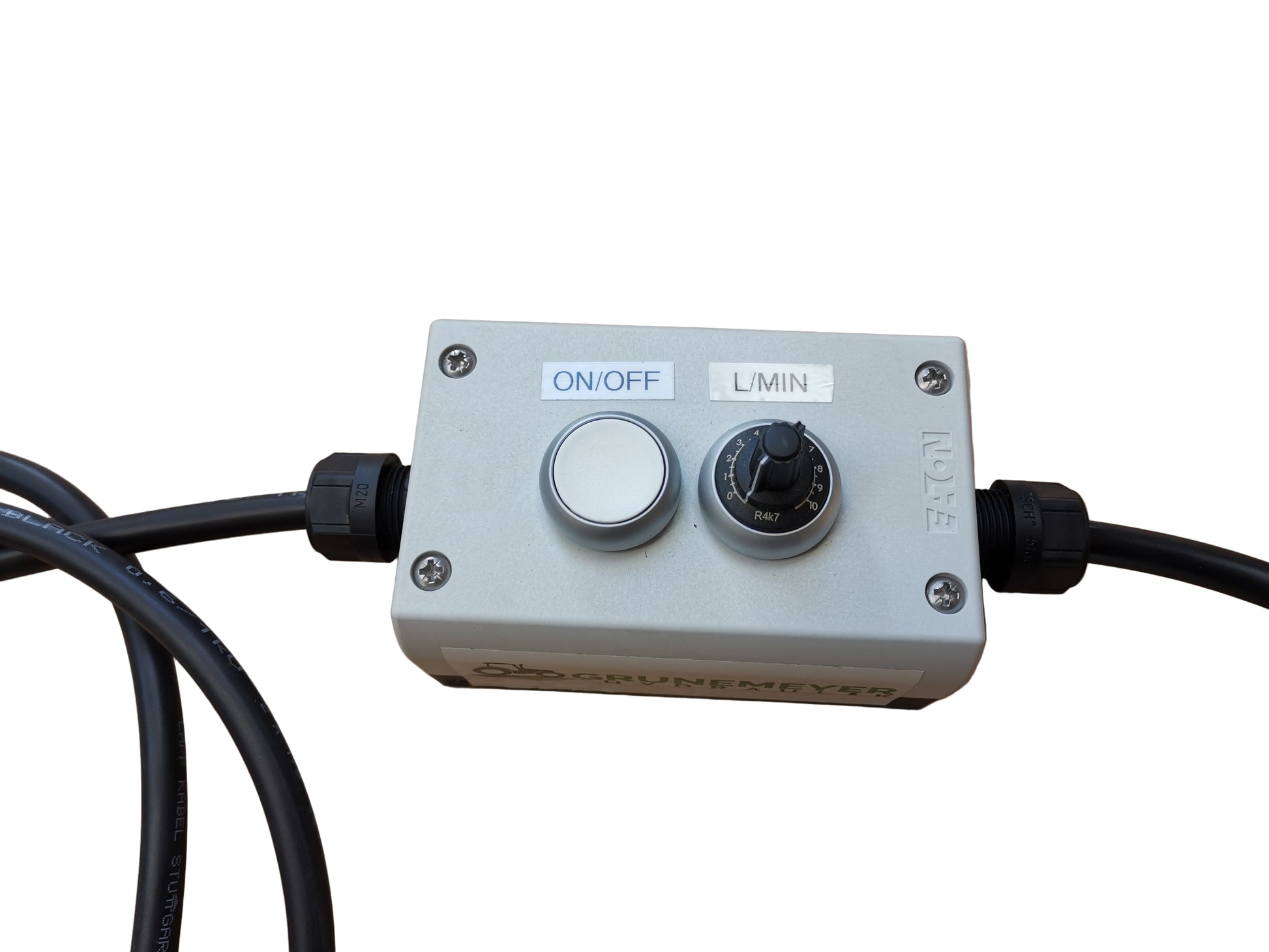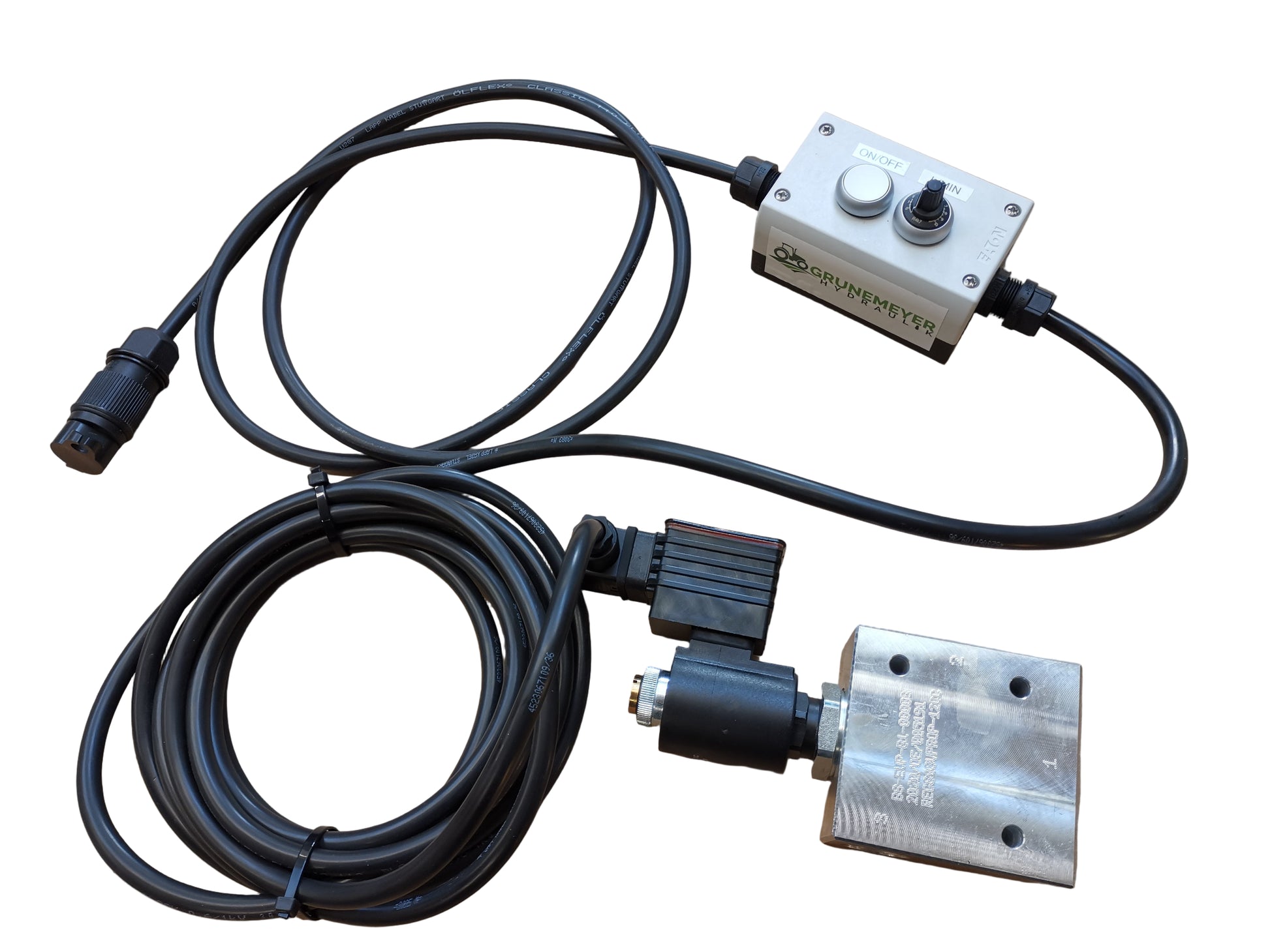 Im Angebot enthalten ist außerdem die 2m Zuleitung mit dreipoligem Stecker und ein 5m Zuleitungskabel zwischen Einstellbox und dem Stromregelventil.