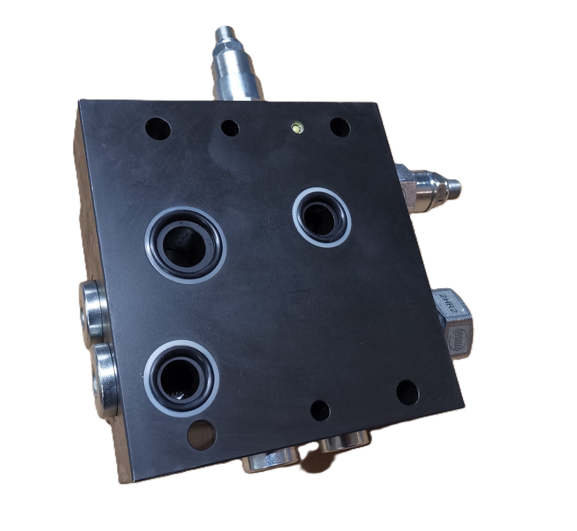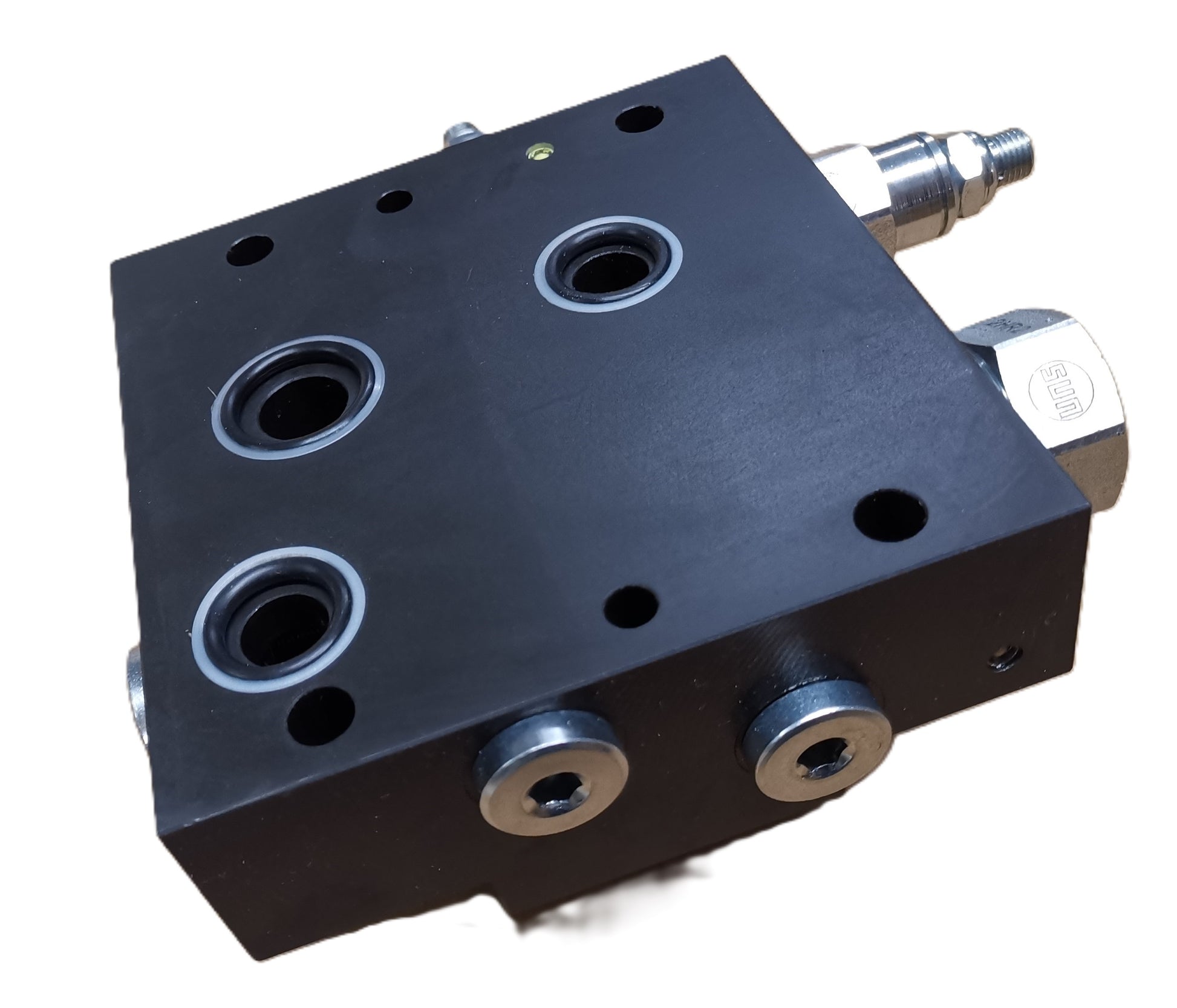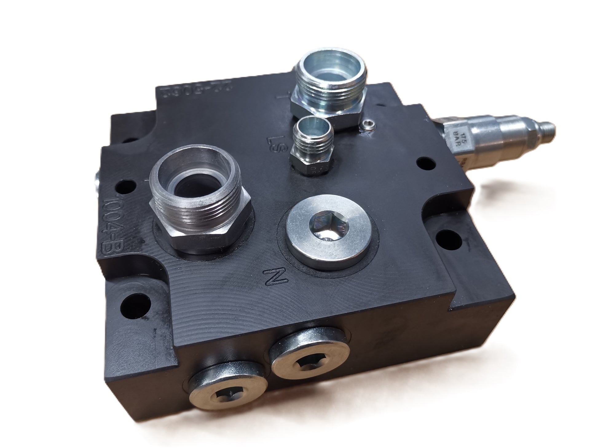 Die Endplatte enthält ein großes Haupt-Druckbegrenzungsventil und ein Druckbegrenzungsventil für das LS-Signal.
