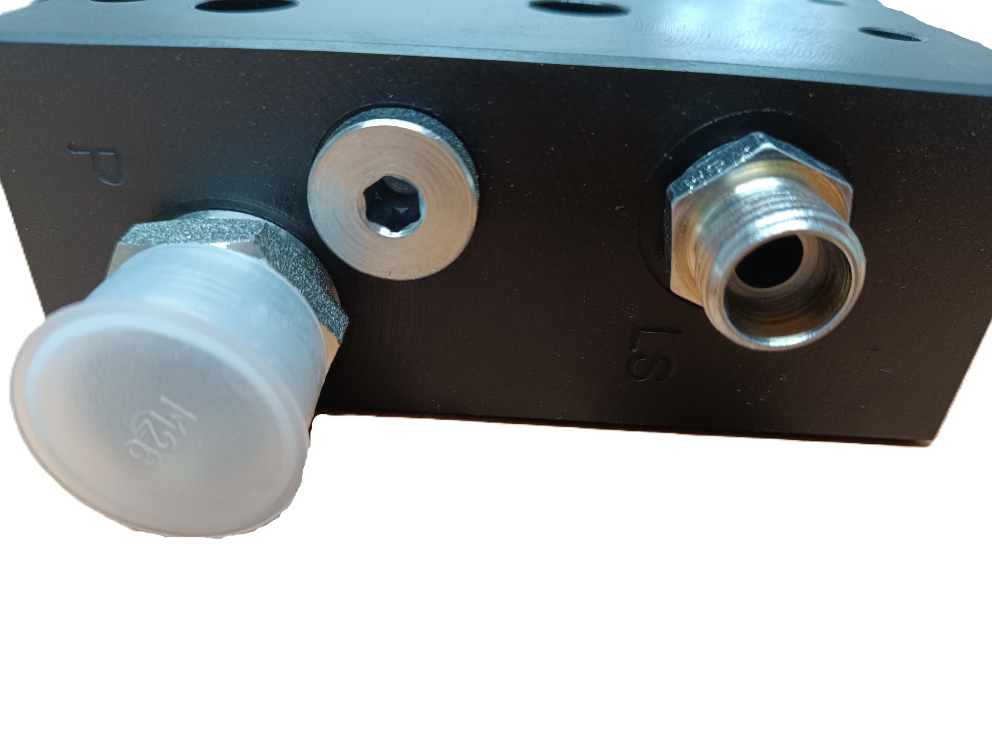 Die Zwischenplatte enthält ein einstellbares Druckbegrenzungsventil für das LS-Signal.