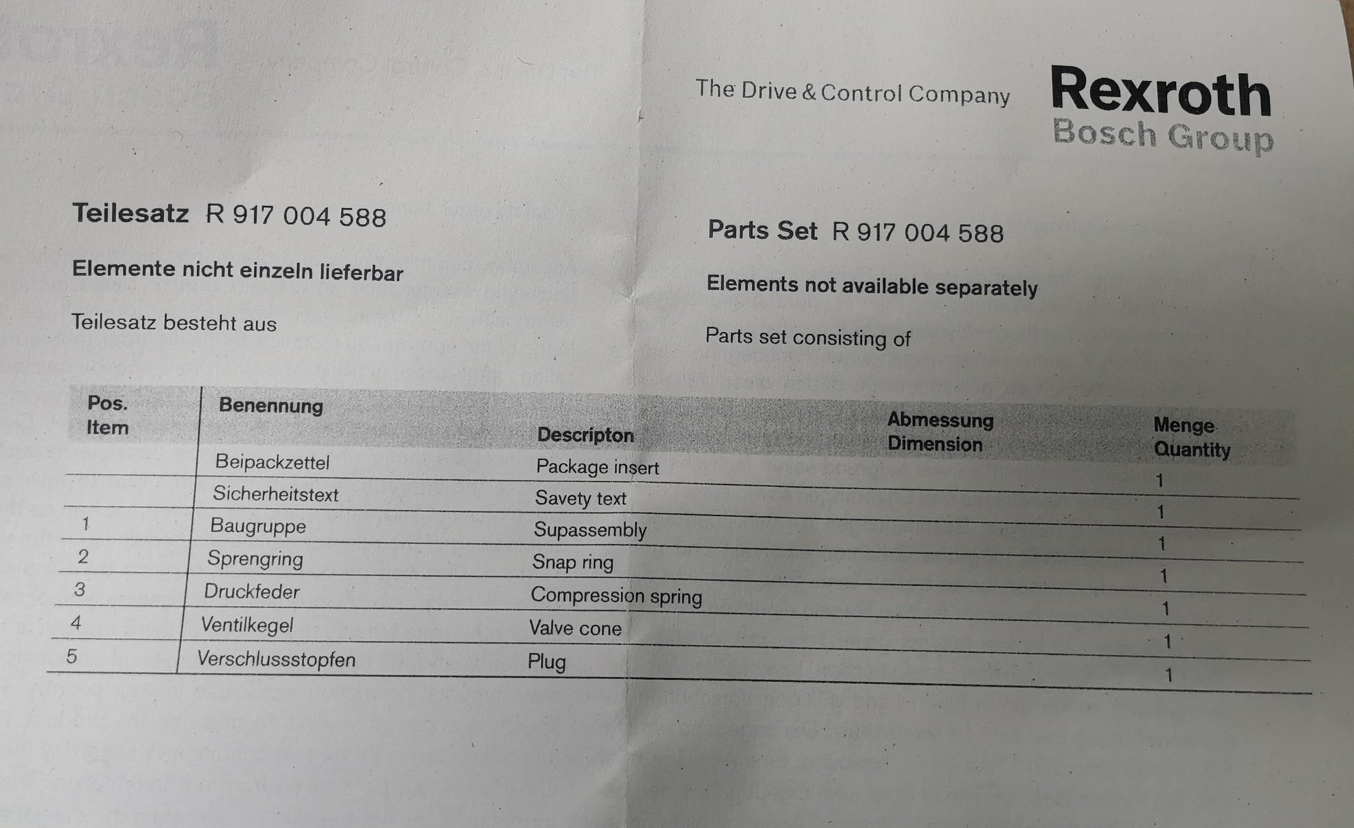 Bosch SB23 Teilesatz Rückschlagventil R917004588